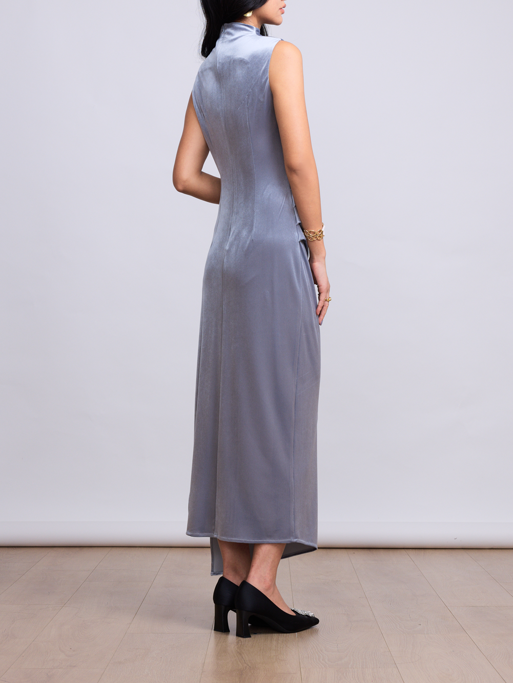 Acetate Velvet Side-Slit Sleeveless Turtleneck Dress