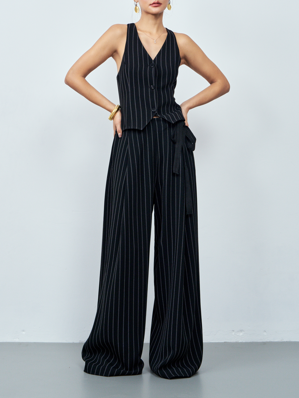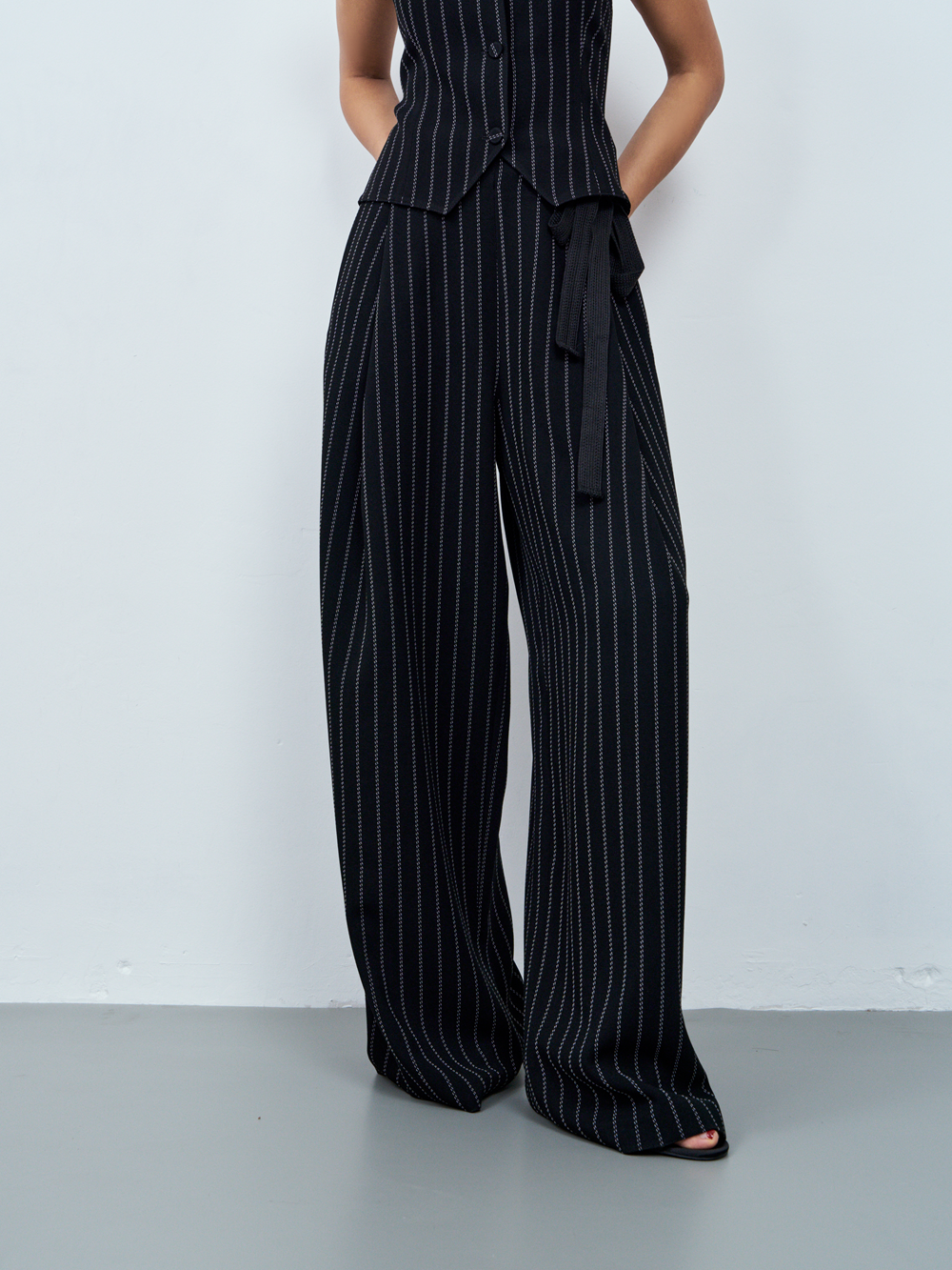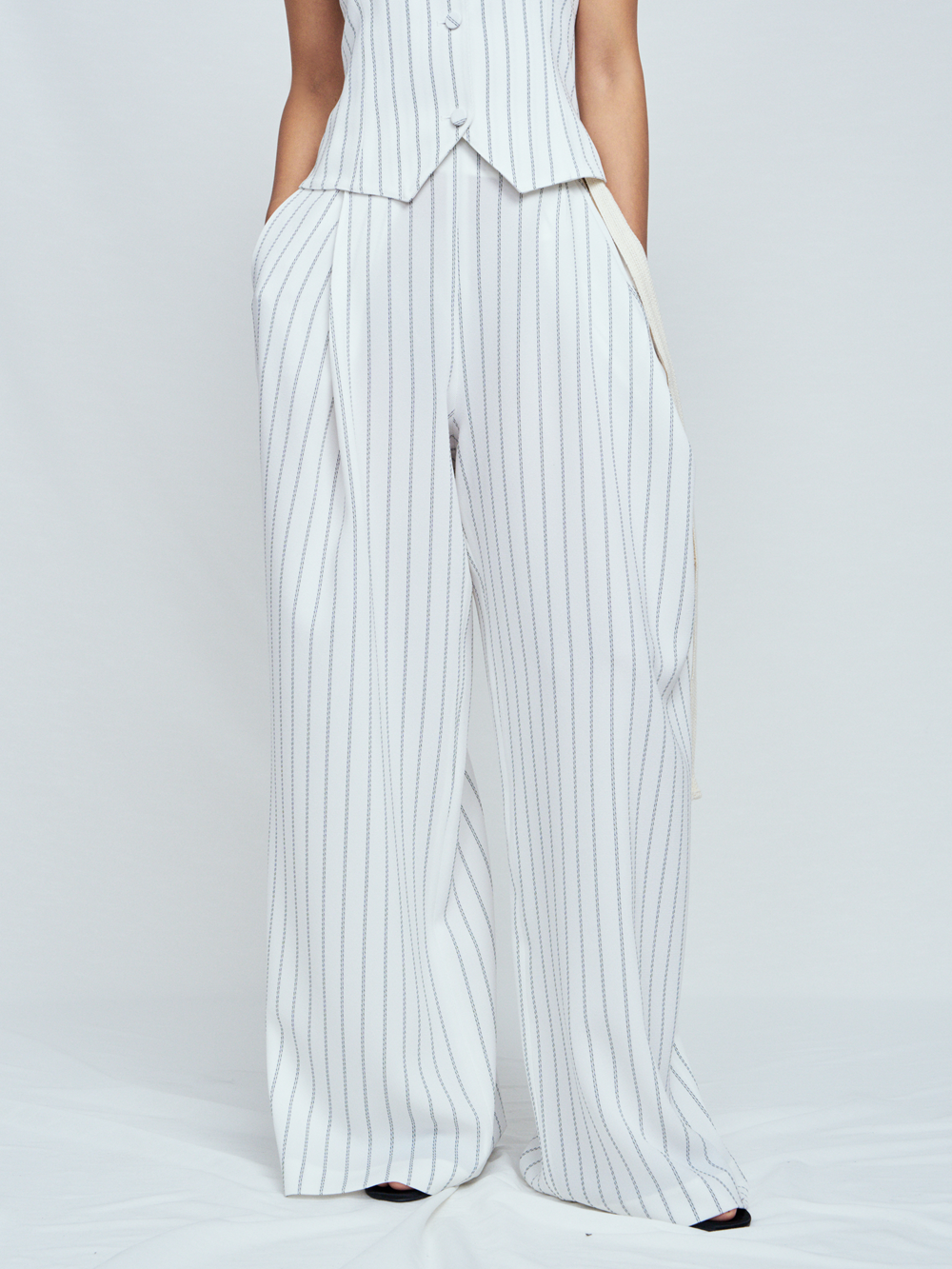 Triacetate Stripe Pleat Front Wide-Leg Trousers
