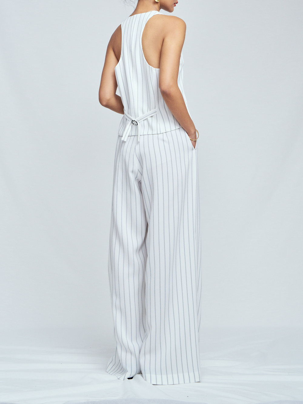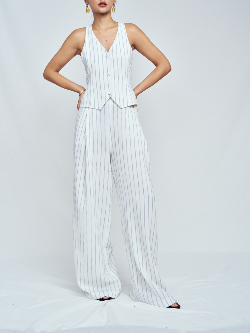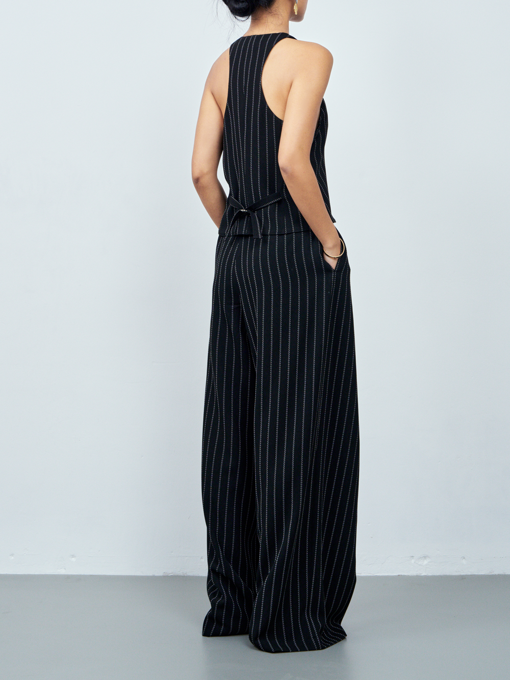 Triacetate Stripe Pleat Front Wide-Leg Trousers